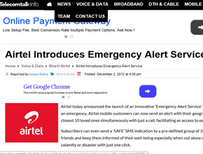 AIRTEL INTRODUCES EMERGENCY ALERT SERVICE