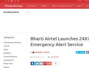 Airtel Offers 24x7 Emergency Alerts Service to its Customers